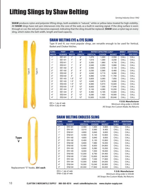 SHAW produces nylon and polyester lifting slings, both available in “natural,” white or yellow latex-treated for high visibility.