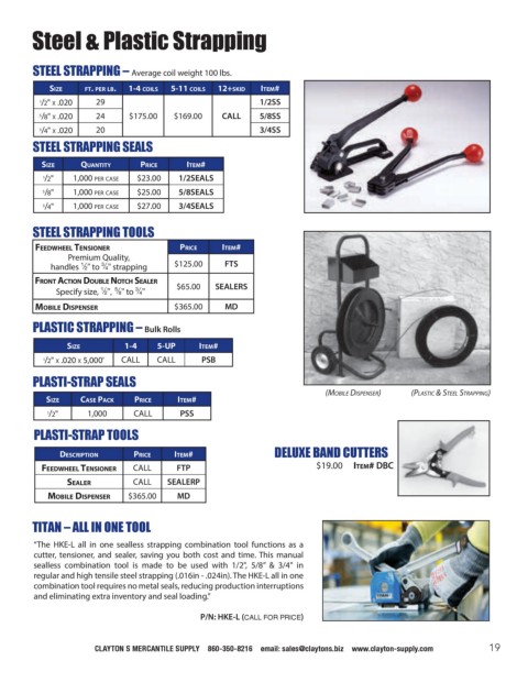 CLAYTON’S MERCANTILE SUPPLY • 860-350-8216 • email: sales@claytons.biz • www.clayton-supply.com 19