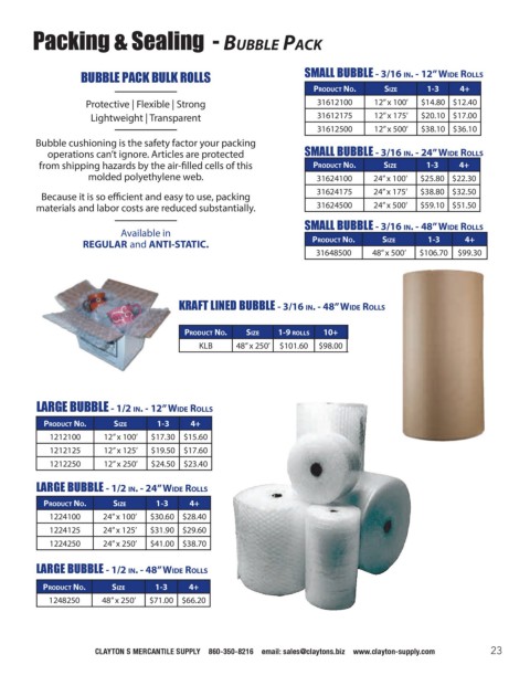 operations can’t ignore. Articles are protected SMALL BUBBLE - 3/16 in. - 24” wide roLLs