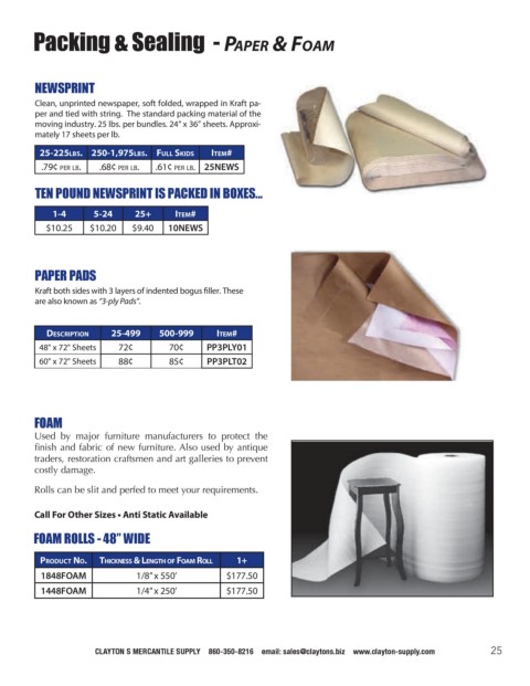 CLAYTON’S MERCANTILE SUPPLY • 860-350-8216 • email: sales@claytons.biz • www.clayton-supply.com 25
