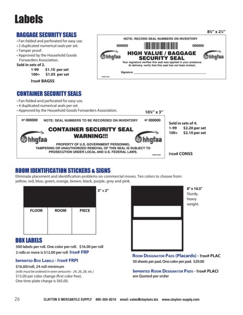 Eliminate placement and identification problems on commercial moves. Ten colors to choose from: