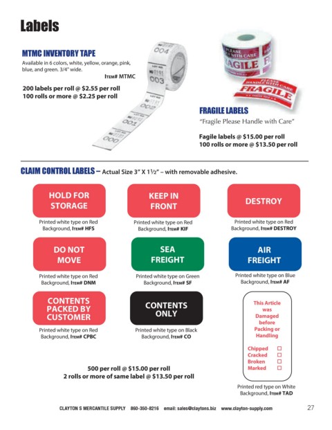 CLAYTON’S MERCANTILE SUPPLY • 860-350-8216 • email: sales@claytons.biz • www.clayton-supply.com 27