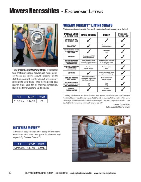 $18.95ea. $16.95 FF the straps (the Forearm Forklift moving straps)... because they are so useful... Our