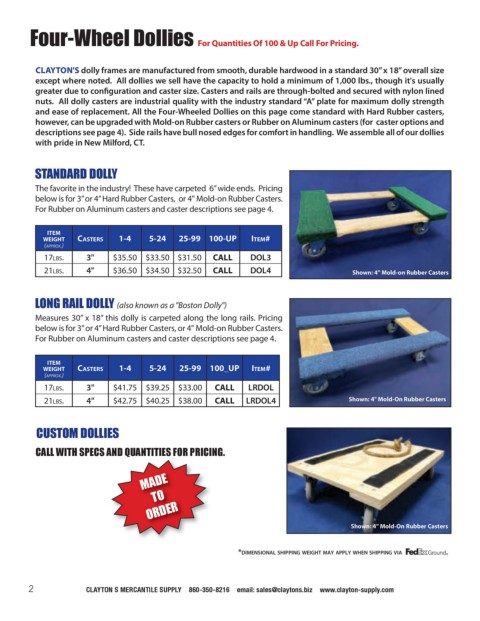 Four-Wheel Dollies For Quantities Of 100 & Up Call For Pricing.