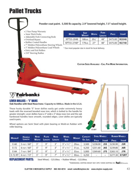 CLAYTON’S MERCANTILE SUPPLY • 860-350-8216 • email: sales@claytons.biz • www.clayton-supply.com 43