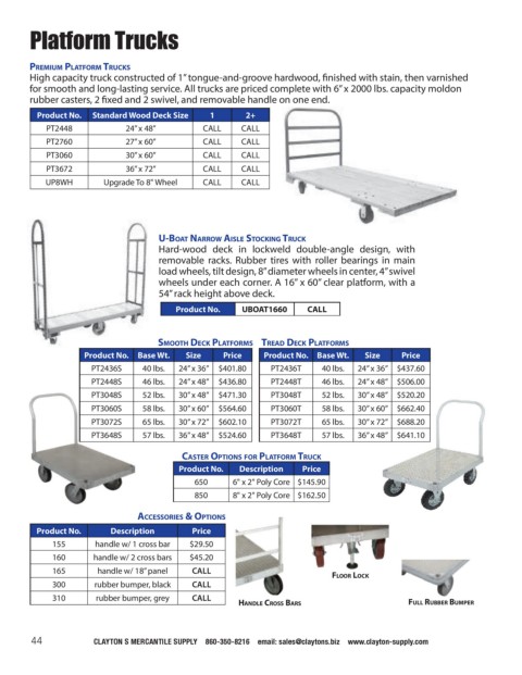 for smooth and long-lasting service. All trucks are priced complete with 6” x 2000 lbs. capacity moldon