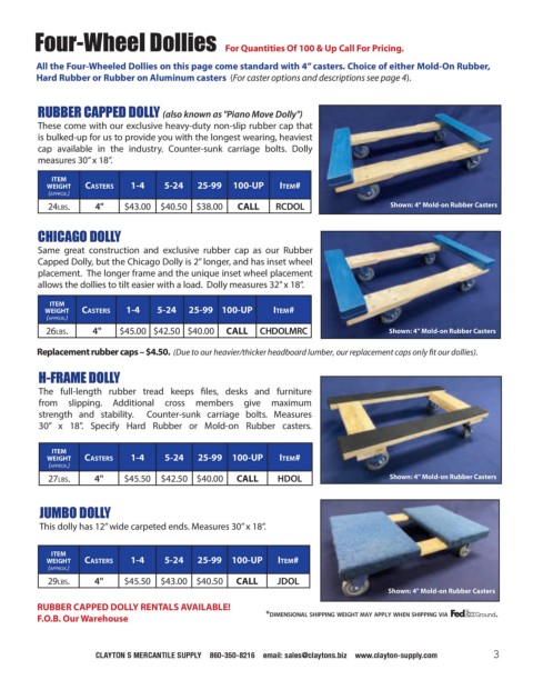 26lbs. 4" $45.00 $42.50 $40.00 CaLL ChdolmRC Shown: 4" Mold-on Rubber Casters