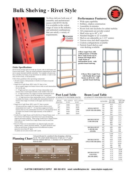 - 9' - 10' high must have two single rivet beam intermediate levels Post Load Table Beam Load Table
