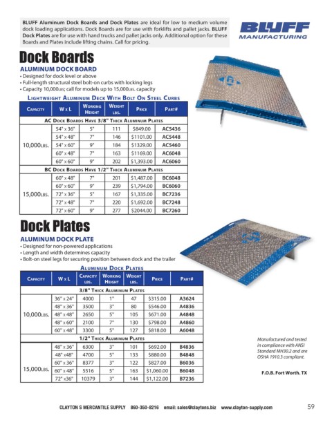 dock loading applications. Dock Boards are for use with forklifts and pallet jacks. BLUFF