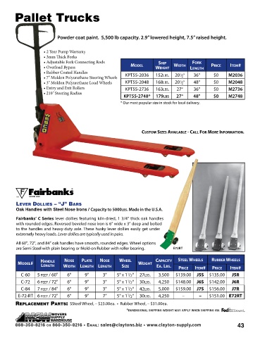 Fairbanks’ C Series lever dollies featuring kiln-dried, 1 3/4” thick oak handles