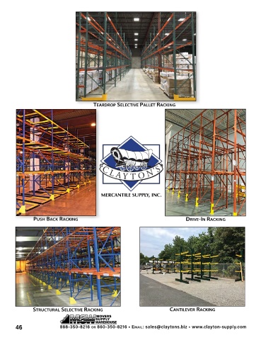 TeARDROP SeLeCTIVe PALLeT RACKInG PUSH BACK RACKInG DRIVe-In RACKInG STRUCTURAL SeLeCTIVe RACKInG CAnTILeVeR RACKInG 46