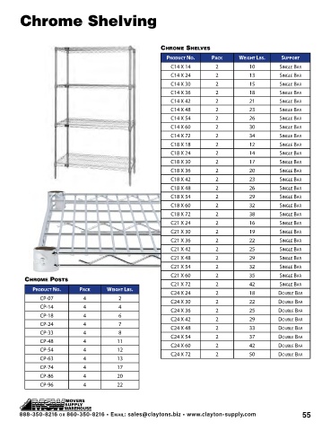 PrODUCT nO. PACk wEighT lBs. sUPPOrT
